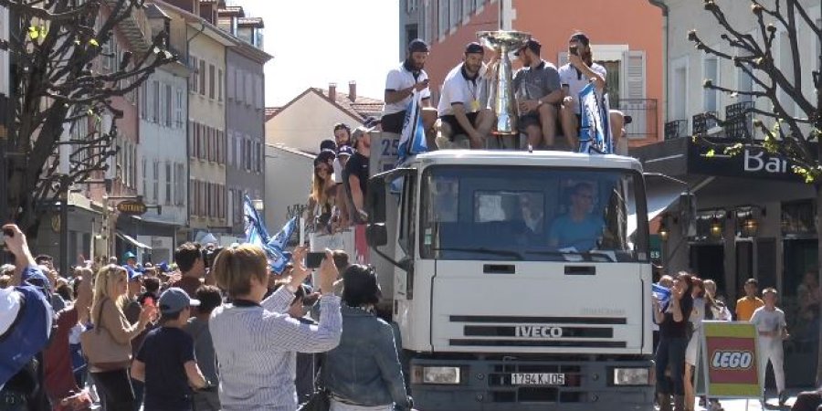 Des supporteurs par centaines rassemblés pour fêter le retour du trophée de la ligue Magnus à Gap, d'abord à l'Alp'Arena pour le retour en bus des joueurs et du staff puis rue Carnot, dans le centre-ville, pour la parade des joueurs avec la coupe. Les Rapaces de Gap ont ainsi pu fêter avec leur public leur victoire lors de la finale du championnat de France de hockey sur glace qui les opposait aux Dragons de Rouen. Les Bleus sont sortis victorieux 2-4 du 6e match ce vendredi soir. Un succès des plus savoureux qui sera de nouveau fêté ce dimanche à 14h30 dans l'antre des "Bleus", l'Alp Arena :