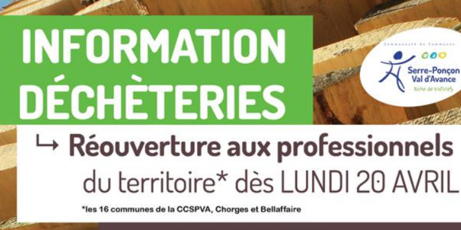 Cette ouverture s’adresse uniquement aux professionnels du territoire de la CCSPVA et des communes de Chorges et Bellaffaire ayant maintenus leur activité et ne pouvant différer leur passage en déchèterie.