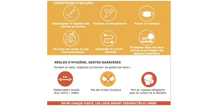 ● les visites doivent être planifiées avec la direction de la résidence afin de garantir la sécurité sanitaire de chaque résident