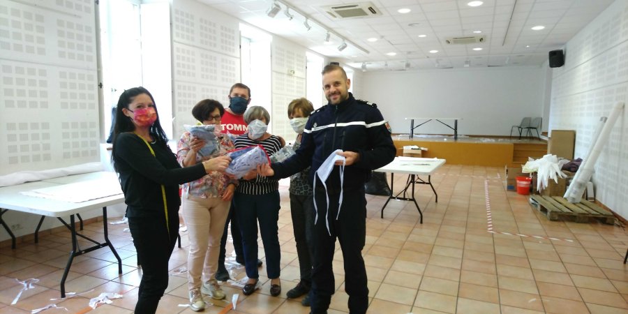 Ce même jour le Chef d’Escadron Philippe Baron, commandant la Compagnie de Gendarmerie de Forcalquier, s’est vu remettre par madame Charlotte Soulard, responsable et coordinatrice de l’association de couture de Forcalquier (et des communes environnantes) « Les Petites Mains », un lot de 120 masques de protection. Ces masques réalisés en tissu lavable sont destinés aux militaires de la Compagnie mais également à ceux du Groupement de Gendarmerie Départementale des Alpes de Haute-Provence.