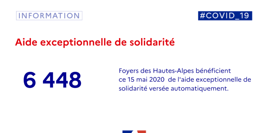 Ce vendredi 15 mai, ce sont 6 448 foyers des Hautes-Alpes allocataires du Revenu de Solidarité Active (RSA) ou de l’Allocation de Solidarité Spécifique (ASS) qui ont perçu une aide de 150 €, à laquelle s’ajouteront 100 € supplémentaires par enfant à charge (7 691 enfants concernés dans le département).