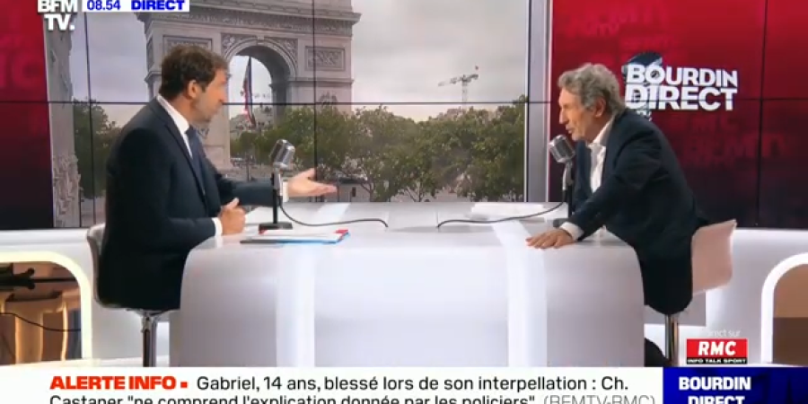 "Le racisme n'a pas sa place dans notre société". Christophe Castaner était ce mardi matin l'invité de Jean-Jacques Bourdin sur RMC et BFM TV. Durant près de 30 minutes, le ministre de l'Intérieur s'est revenu sur son discours de la veille, sur le dossier des violences et du racisme dans la police et dans la gendarmerie ainsi que sur les diverses affaires en cours. Christophe Castaner l'a répété. Il n'y aura "aucune tolérance" contre le racisme. Une "suspension systématique" aura lieu dès lors qu'il y aura un soupçon avéré d'acte ou de propos raciste.