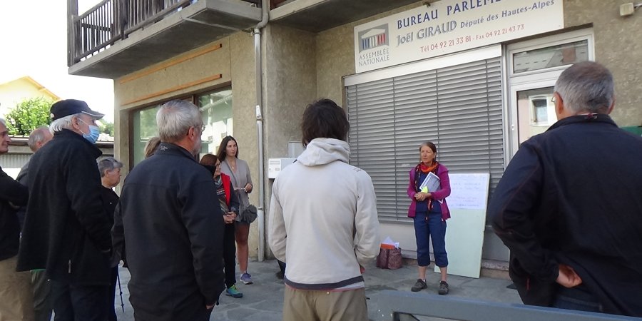 Suite à l'appel national du 17 juin contre la réintoxication du monde, deux manifestations ont eu lieu ce mercredi dans les Hautes-Alpes : à Gap devant le bâtiment de l'ADDET 05, et à l'Argentière la Bessée devant la permanence du député Joël Giraud, où nous avons retrouvé Violaine Gaboriau, citoyenne haut-alpine écologiste, en compagnie d'une vingtaine de personnes. Elle a choisi ce lieu qui symbolise le pouvoir politique et décisionnel, et par cette action veut faire comprendre que la crise économique sera pire que la crise sanitaire si on ne fait rien.
