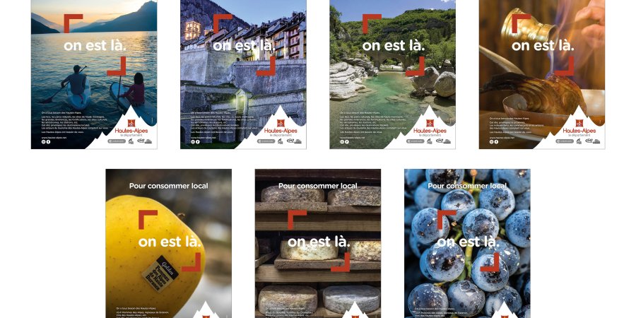 Le choix a été fait de décliner la campagne institutionnelle du Département signée "On est là" pour fédérer et renforcer l’impact avec une série de publicités ventant les richesses de l'économie, du tourisme et de l'agriculture des Hautes-Alpes.
