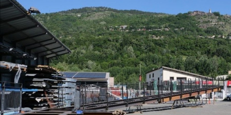 La passerelle piétons cycles de la via Guisane était montée ce matin dans la cour de l’entreprise Massé située dans la zone d’activité sud. « Un montage à blanc » comme disent les soudeurs, afin de vérifier l’ajustage de toutes les parties et de faire un premier assemblage avant le définitif sur site.