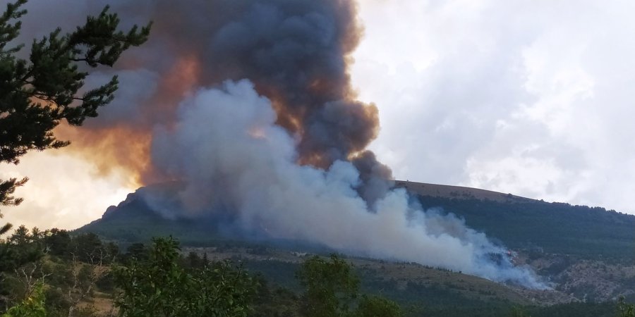 Les pompiers sont sur place. Des moyens aériens ont été appelés en renfort et 4 Canadair étaient attendus, mais malheureusement, à cause des orages, ils n'ont pu arriver.