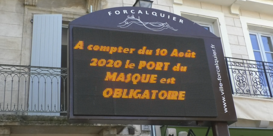 Le port du masque désormais obligatoire dans le centre-ville et le centre ancien à Forcalquier. Un arrêté municipal a été pris ce lundi par la municipalité après la découverte d'un cluster. Quatre personnes ont été testées positives au Covid-19 au sein du centre médico-social. La structure, qui depuis a été totalement désinfectée, a fermé ses portes. David Géhant, maire de la commune, demande donc à présent aux Forcalquiérens de rester vigilants.