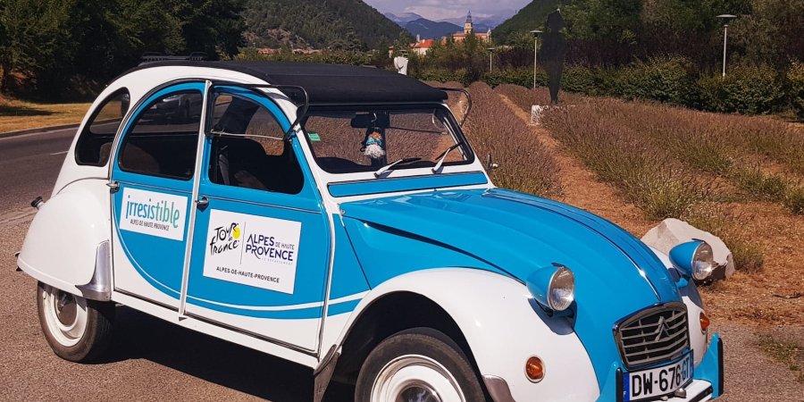 En amont du passage du Tour de France dans notre département les 31 août et1 er septembre, l’Agence de Développement 04 et ses partenaires : les offices de Tourisme de Castellane, de Provence Alpes Digne-les-Bains et de Sisteron-Buëch organisent les 18 et 19 août prochains une opération promotionnelle grand public. Goodies, flyers et cartes postales estampillés Alpes de Haute-Provence et Tour de France seront largement distribués depuis une 2 CV décapotable parée pour l’occasion aux couleurs du département successivement :