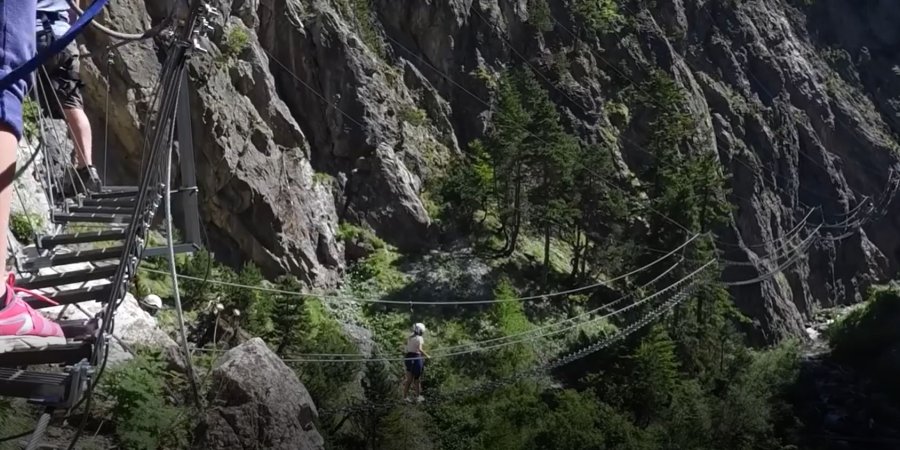 Amateurs de sensations (très) fortes, le pont tibétain de Clavière en Italie, de l'autre côté de la frontière de Montgenèvre, est fait pour vous ! C'est le plus long pont suspendu du monde, à parcourir équipé bien sûr d'un baudrier. Un parcours vous est proposé, composé de 3 ponts à câbles et traverse les gorges de San Gervasio. En alternative au chemin, vous pouvez atteindre le troisième pont le long de la via ferrata. Tout est accessible à partir de 6 ans, explications détaillées avec Gabriel Barbangelo, un des employés du site et cordiste hors saison.