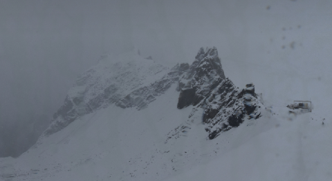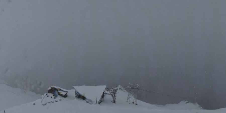 La Grave 3200 m !!! Rien de surprenant à cette altitude, mais il y a encore 2 jours il faisait plus de 10° et quasiment 30° à Briançon et dans les vallées des Hautes-Alpes. Ce matin c'est une bonne vingtaine de cm de neige mouillée qui recouvre l'arrivée du téléphérique à 3200. Plus en altitude sur les sommets des Écrins au-dessus de 3500 m, la couche atteint près de 40/50 cm. Le rêve de poudreuse pour certains va rapidement disparaître, puisque le mercure va repartir à la hausse dans la semaine et pour le week-end prochain, le temps s'annonce de nouveau bien estival en montagne. L'été n'est pas fini !!!!