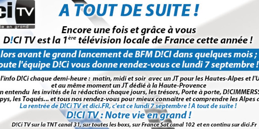 Installée depuis 2013 volontairement dans une commune de 2800 habitants en zone de revitalisation rurale où elle a créé une vingtaine d’emplois, elle est devenue en 7 ans un media incontournable sur les deux départements des Hautes-Alpes et des Alpes de Haute-Provence sur lesquels elle émet en TNT.