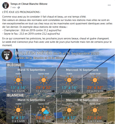 Ci-dessous bilan de la journée dans le 04 sur le Facebook "Temps et Climat Blanche-Bléone"