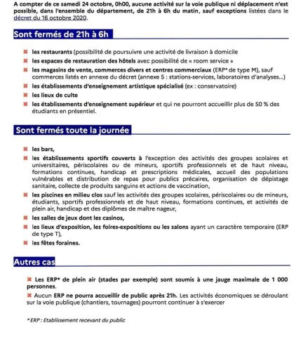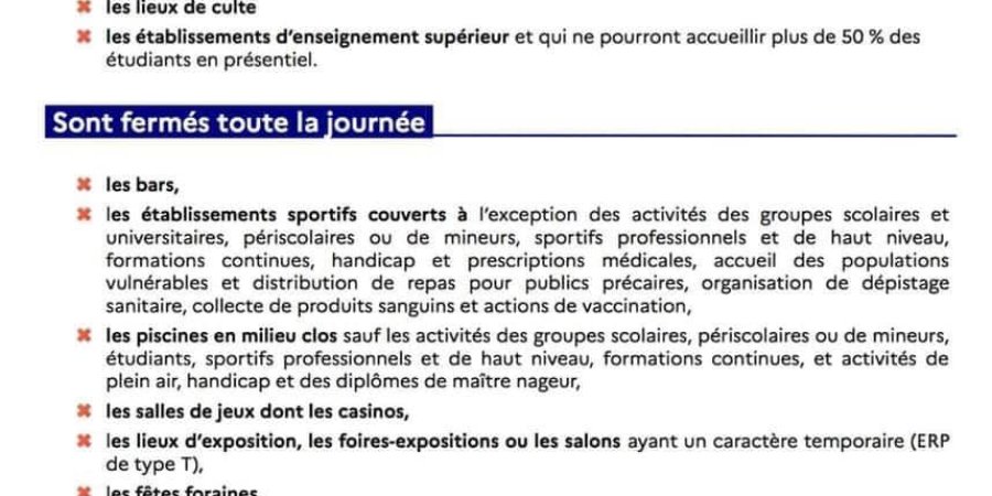 Il convient par exemple de bien noter que tous les bars du département devront fermer leurs portes pendant 6 semaines.