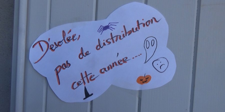 Les extérieurs des maisons ont été décorées, mais Céline a signalé sur sa porte qu'elle ne donnerait pas des bonbons aux enfants cette année :