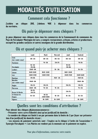 Pour retirer vos chèques, la mairie de Forcalquier organise une permanence ce jeudi de 8h à 12h et de 14h à 18h.