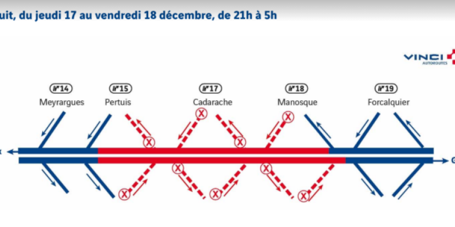 Des convois exceptionnels ITER sur l'autoroute A51. Ils vont transiter sur l'itinéraire spécialement aménagé entre Pertuis (n°15) et Manosque (n°18) dans la nuit de ce jeudi à ce vendredi de 21h à 5h. La circulation sera donc interrompue dans les deux sens. Les conducteurs en direction d'Aix-en-Provence devront obligatoirement emprunter la sortie de l'échangeur n°18 à Manosque. Ceux en direction de Gap devront sortir à l'échangeur de Pertuis, n°15.