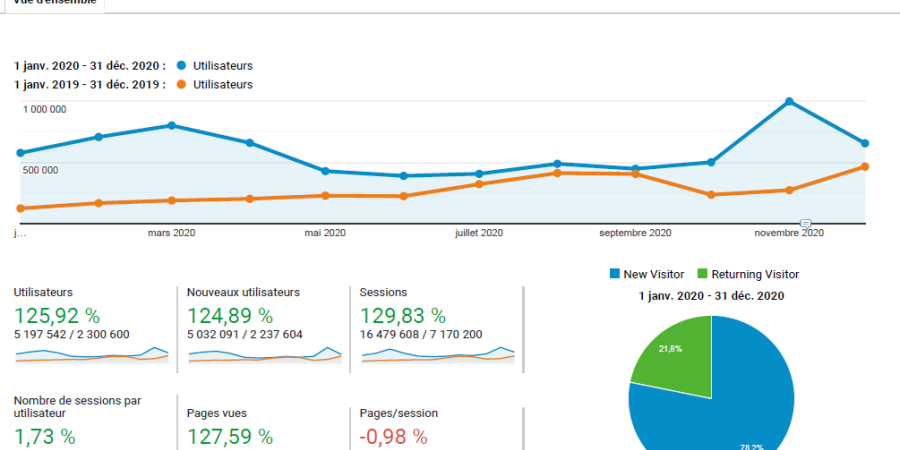 Ou encore (voir ci-dessous) 24 millions de pages vues, le tout depuis un territoire de 300 000 habitants !