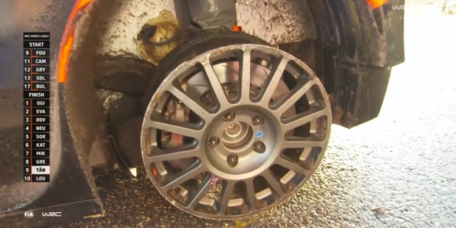 C'est donc sur la jante qu'il est rentré à Gap ce qui est formellement interdit par le règlement . On peut en effet rouler sur la jante dans une spéciale mais pas sur les routes de liaison. Résultat il a été mis hors course et ne marquera pas de point au championnat du monde.