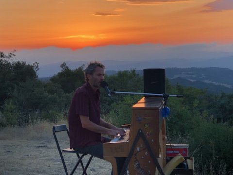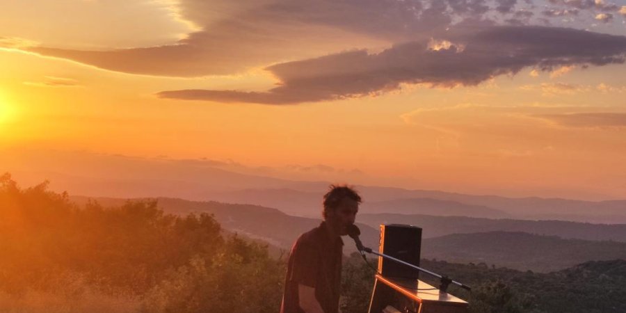 Philippe Seranne et son Piano-Vélo sur l'aire du bout du monde de Saint-Julien le Montagnier, le Mont Saint-Michel de la Provence comme disait Jean Giono