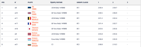 Sur une route rapidement dégradée et petit à petit plus lente, Ott Tänak a réalisé le meilleur temps de ce shakedown, un petit dixième devant ELfyn Evans. Le favori n°1 de cette épreuve, Sébastien Ogier, a signé le quatrième temps.