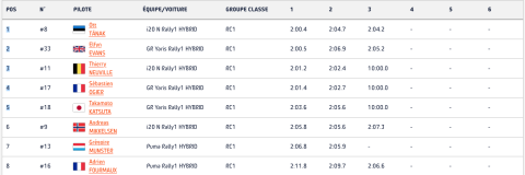 Sur une route rapidement dégradée et petit à petit plus lente, Ott Tänak a réalisé le meilleur temps de ce shakedown, un petit dixième devant Elfyn Evans. Le favori n°1 de cette épreuve, Le Champsaurin Sébastien Ogier, a signé le quatrième temps.