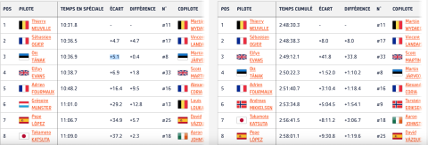 Dans une spéciale comportant une petite portion glacée en fin de chrono, Thierry Neuville a su faire la différence sur les premiers kilomètres secs. Parti moyennement, Sébastien Ogier lâche finalement 4s7 à l’arrivée et se retrouve maintenant à 8s du belge au général alors qu’il reste seulement deux spéciales.