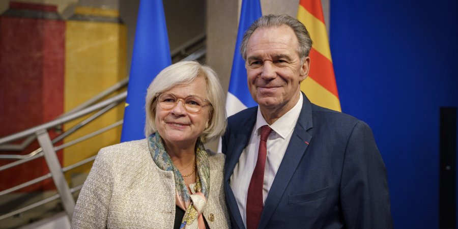 Ce jeudi , Renaud Muselier, Président de la Région Provence-Alpes-Côte d'Azur, Président délégué de Régions de France, et Catherine Vautrin Ministre du Travail, de la Santé et des Solidarités se sont réunis à l’Hôtel de Région, à l’occasion du premier anniversaire du schéma régional des formations sanitaires et sociales, aux côtés notamment de Georges Leonetti, Vice-Président de la Commission Santé, Handicap, Enseignement supérieur, recherche, Conseiller régional spécial délégué à la santé, à la lutte contre la pandémie, à l’enseignement supérieur et à la recherche.