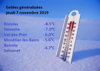 Lire la suite de Le froid arrive ! Retour des fortes gelées la nuit passée dans les vallées alpines. SociétéLe froid arrive ! Retour des fortes gelées la nuit passée dans les vallées alpines.Le froid s'installe. Ce jeudi matin les gelées généralisées ont fait descendre le mercure jusqu'à -5 à -8° pour les...froid
