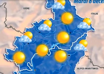 Lire la suite de Alpes du Sud : Voici vos prévisions météo pour ce Mardi 8 Decembre 2015 Info serviceAlpes du Sud : Voici vos prévisions météo pour ce Mardi 8 Decembre 2015MARDI 8 AMELIORATION Avec le vent, faible à toutes altitudes, qui bascule au secteur ouest, les nuages regressent...météo