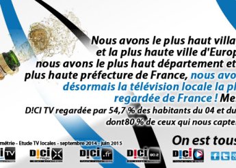 D!CI TV regardée par près de 80% des habitants du 04 et du 05 qui nous captent/ dici.fr: + 10 millions de visiteurs/ D!CI Radio 90.2 en progression de 27%/ Merc!