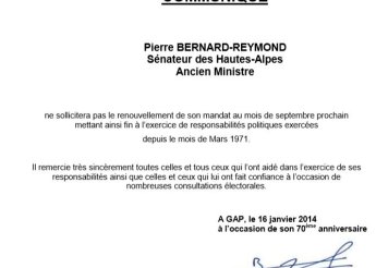 Lire la suite de Hautes-Alpes : Pierre Bernard-Reymond arrête la vie politique PolitiqueHautes-Alpes : Pierre Bernard-Reymond arrête la vie politiqueHautes-Alpes: C'est fait, il a pris sa décision. Pierre Bernard-Reymond arrête la vie politique. Il ne se représentera...politique