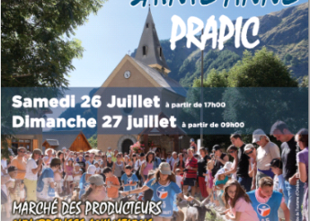 Lire la suite de Hautes-Alpes: Fête de la Sainte Anne à Prapic ce week-end SociétéHautes-Alpes: Fête de la Sainte Anne à Prapic ce week-endHautes-Alpes: Ce week-end, le village de Prapic en fête ! Une journée d'animation pour toute la famille, marché de...