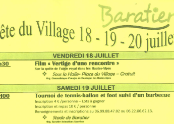 Lire la suite de Hautes-Alpes: la fête du village de Baratier débute ce vendredi SociétéHautes-Alpes: la fête du village de Baratier débute ce vendrediHautes-Alpes: La fête de village de Baratier commence ce vendredi avec avec la projection du film "Vertige d'une...