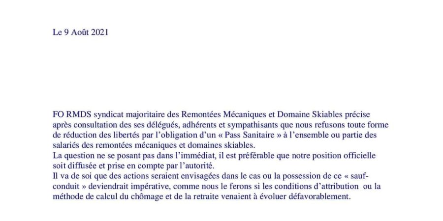 Publié par Jean Eymar le lun, 09/08/2021 - 20:48 Le syndicat majoritaire des remontées mécaniques annonce la couleur... 235180187_991743441603884_7364093740575105154_n.jpg