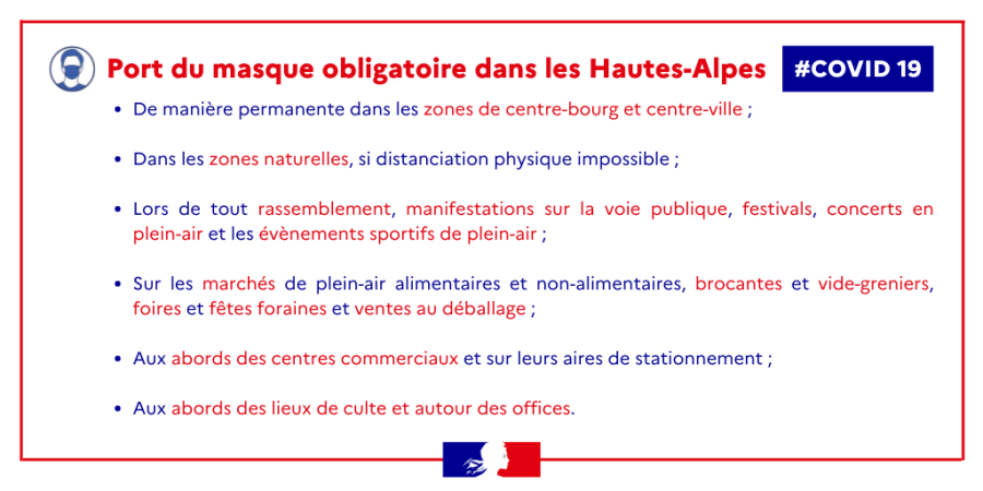 Publié par Jean Eymar le mer, 18/08/2021 - 11:24 Les conditions du port du masque obligatoire dans les Hautes-Alpes : 237903096_4150588231722004_4873901962840861001_n.png