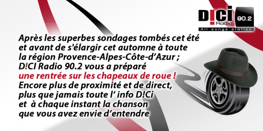 Après les superbes sondages tombés cet été et avant de s'élargir cet automne à toute la région Provence-Alpes-Côte-d’Azur ; D!CI Radio 90.2 vous a préparé une rentrée sur les chapeaux de roue!