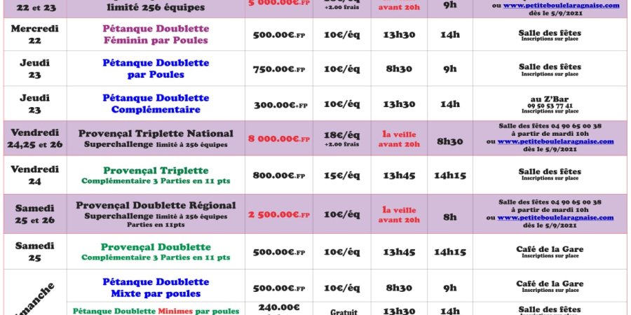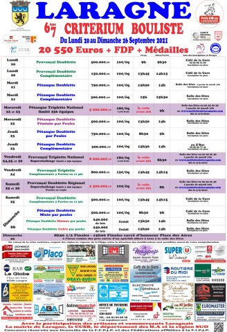 Publié par Jean Eymar le mar, 31/08/2021 - 18:04 Le 67è critérium bouliste de Laragne se dérulera du 20 au 26 septembre 219389938_1247313395704122_1842652814231207669_n.jpg