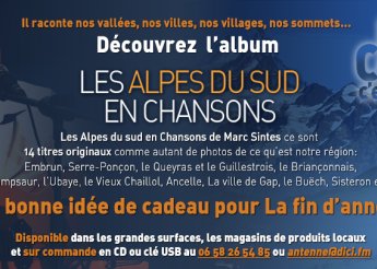 Lire la suite de Commandez l’album, les Alpes du sud en Chansons de Marc Sintes , 14 titres comme autant de photos de ce qu’est notre région Commandez l’album, les Alpes du sud en Chansons de Marc Sintes , 14 titres comme autant de photos de ce qu’est notre région Les Alpes du Sud en chanson
