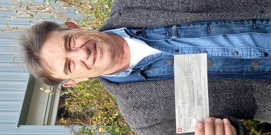 Comme promis, nous lui avons remis un chèque d'une valeur de 80 euros : l’équivalent de ce qu'il a économisé durant sa 1ere semaine d’arrêt du tabac. Bon courage Jacky !