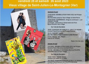 Lire la suite de Tango, Piano-Vélo, Chansons ce samedi et fête patronale ce dimanche à Saint-Julien le Montagnier à côté de Ginasservis Tango, Piano-Vélo, Chansons ce samedi et fête patronale ce dimanche à Saint-Julien le Montagnier à côté de GinasservisLe Mont Saint-Michel de la Provence aimait à dire Jean Giono.