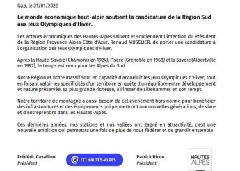 Lire la suite de L’ensemble du monde économique unis derrière la candidature aux Jeux Olympiques dans les Alpes du Sud L’ensemble du monde économique unis derrière la candidature aux Jeux Olympiques dans les Alpes du Sudhistorique