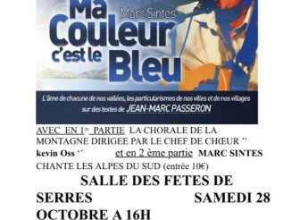 Lire la suite de À ne pas manquer: le concert de demain à Serres à 16h "Les Alpes du Sud en chansons" À ne pas manquer: le concert de demain à Serres à 16h "Les Alpes du Sud en chansons" avec apéritif et mini concert