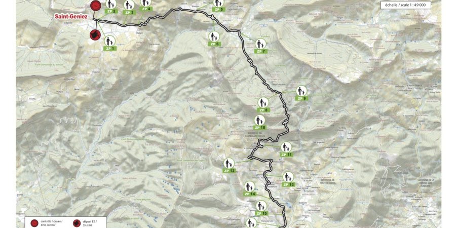 ZP 1 & 2 (00,000 km) / ZP 3 (01,240 km) / ZP 4 (01,800 km) Accès par D3 en provenance de Sisteron (Stationnement dans Saint-Geniez) / Via D3 from Sisteron (Parking in Saint-Geniez).