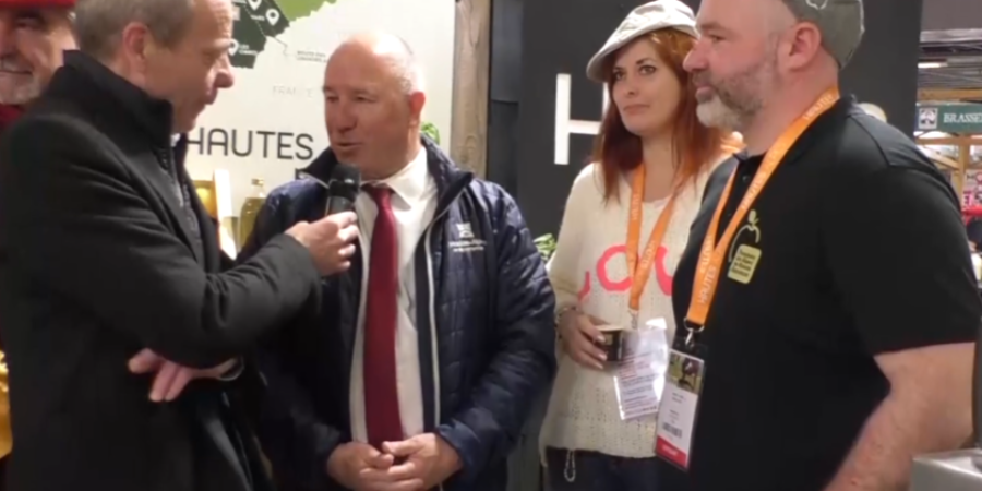 Comme vous le savez nous sommes en partenariat avec l’agence de développement des Hautes-Alpes. On retrouve à Paris Porte de Versailles une nouvelle fois Jean-Marc Passeron qui, vous allez le voir, est bien entouré ! La Confrérie de la pomme, le Vice-président du département en charge de l’agriculture et Aurélia….