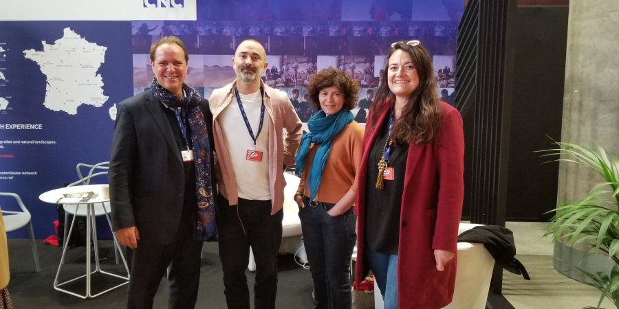 Photo : Le stand du CNC au forum Série Mania de Lille, a accueilli notamment Mathieu Ripka (responsable attractivité du CNC), Lional Sousa (Chargé de mission audiovisuel et de Communication du CNC), Yamina Lamara de la Commission du Film de la Région Sud et Hinatéa Perrier (Bureau d’accueil des tournages des Alpes du Sud).