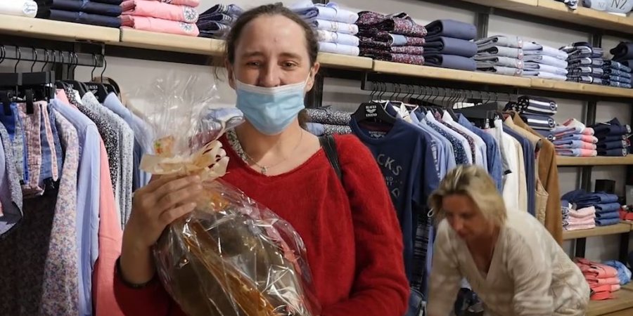 Elle attendait comme une dizaine d’autre personnes depuis 8h30 ce mardi matin l'ouverture du magasin et elle a été la première à trouver l’œuf en or dissimulé dans un sac de sport!
