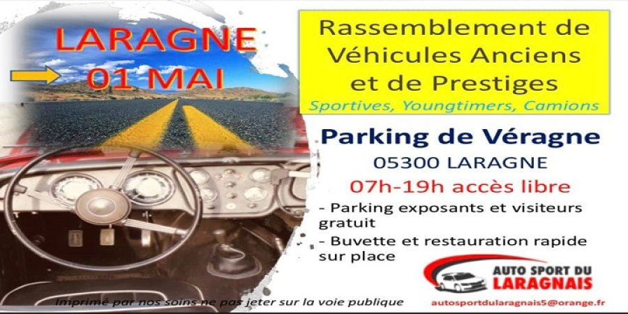 Ce jeudi, Gilles TOURVIEILLE co-président de l’Autosport du Laragnais nous parlait de manifestations organisées ce week-end à Laragne pour financer en partie le Rallye du Laragnais qui aura lieu les 3, 4 et 5 juin prochains. Vide grenier samedi, exposition de véhicules de prestige dimanche et tout au long du week-end salon de l'auto. Le tout Parking de Véragne