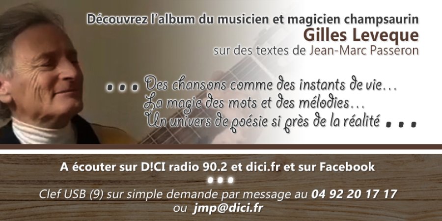 Ces derniers mois, ce sont les mots de Jean-Marc Passeron qu’il a mis en musique et interprétés d’où cet album « trois p’tits point de suspension » que nous vous invitons à découvrir sur le Facebook de Gilles Leveque, sur dici.fr ou sur la chaîne You Tube de Jean-Marc Passeron.